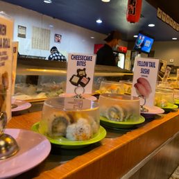 We hadn't been back for many years, the change of ownership, pandemic, etc. But after several years, we decided to return. It was just as great as we remembered it, except really crowded on Friday. That's great it's crowded, that means the food rotates often. The number of selections were very good as usual but this time there were not as many raw fish plates as they were before so you had to wait quite a while before the raw fish would get replenished. There were a lot of rolls and other odds and ends items like egg rolls, desserts, apple juice, etc. All of the fish plates we had seemed fresh, and were not fishy smelling. The small cheesecakes were delicious as well as the tiramisu. Most of the raw fish plates were in the $3.75 green plate category. We ended up eating quite a bit. And I had 16 green plates and a handful of other colored plates. I also had an iced tea which was delicious and they refilled it often. My total was $93 before tax and tip. And I did not feel overstuffed but I was satiated. The other person who came with me probably only got half as many plates and a soda and he seemed to enjoy all of his plates as well. The only thing that I was uncertain about is the clam sushi because I didn't know if it was cooked or raw and what it was supposed to taste like. It was quite chewy and I did not like it uncooked so I did not eat the second piece. Overall excellent place clean and great service. The only thing we would ask is for more raw fish and sushi on the conveyor belt at a time so we wouldn't have to wait as long for them to come around. Although you may see a few bad reviews overall the restaurant continues to do well and have overall high reviews by many many people even after changing ownership and luckily surviving the pandemic.